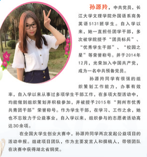 2017年第二届十佳大学生 孙源羚 中共党员 外国语系英语5131班