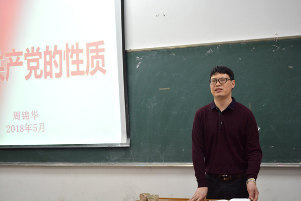 “中国共产党是什么性质的党,它与其它政党和社会团体有什么区别?”周锦华从政党的性质 、政党的产生、政党的特征三个方面进行了详细阐述。