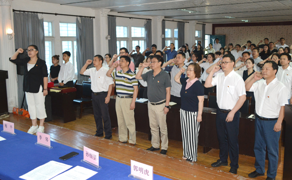 上午八点半,会议正式开始,整个会堂气氛庄重热烈。在雄壮的乐曲声中,全场起立,高唱《中华人民共和国国歌》。随后,与会人员集体重温入党誓词,铿锵有力的宣誓声响彻会场。