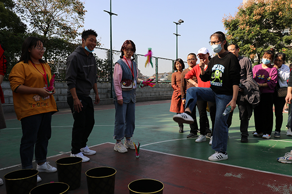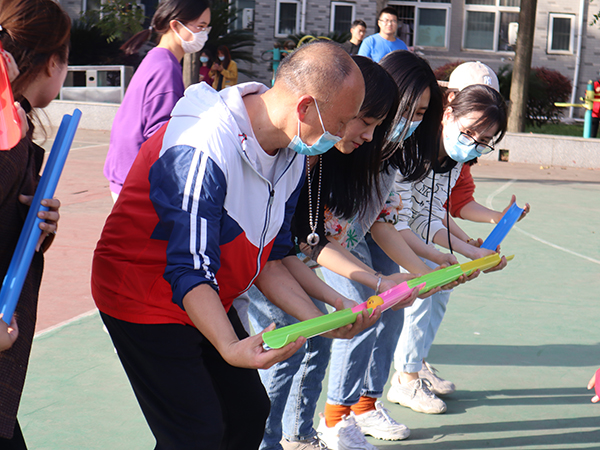 此次教职工趣味运动会设有踢毽入篮、定点投篮、镖镖红中、套圈等4项个人项目和两人三足、珠行万里、车轮滚滚、同心鼓颠球、毛毛虫接力等5项集体项目。9项比赛均设一二三等奖。