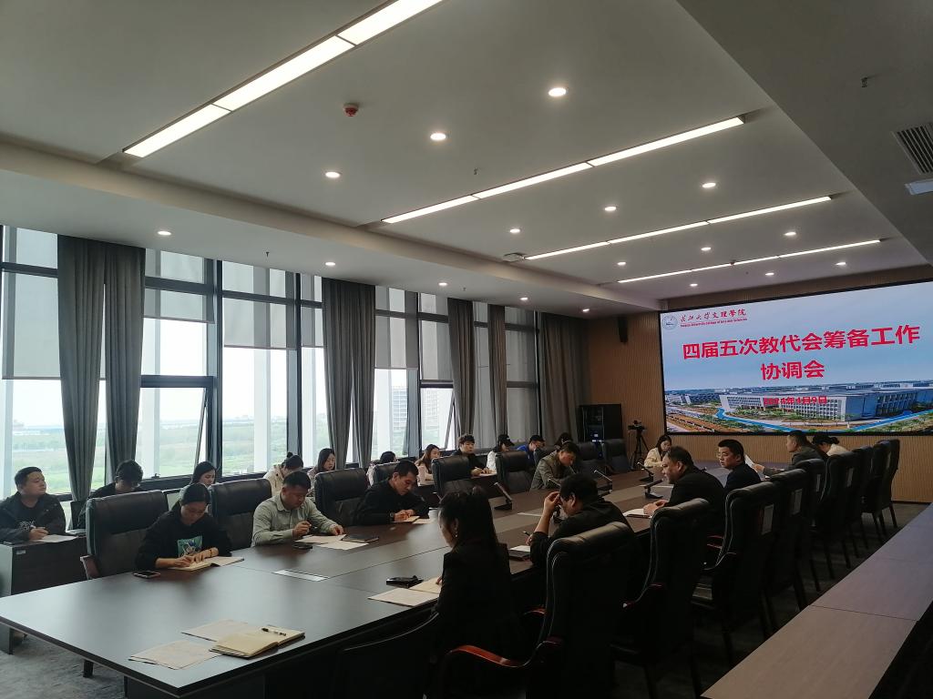 (本网讯)4月9日下午,学院工会在图书馆512会议室召开第四届教职工代表大会第五次会议筹备工作协调会。党委副书记李则俊、教代会筹备工作领导小组下设的五个工作组的组长及成员、各分工会主席参加会议。会议由工会主席刘磊主持。