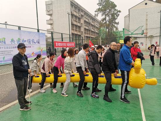 首先进行的是团体项目,总共5个项目分别是:“摸石头过河”、“无敌风火轮”、“珠行万里”、“一圈到底”、“毛毛虫接力”,结束后,进行4项个人项目。每项活动所有机电系教职工都是踊跃报名,积极参加,现场活动热烈。