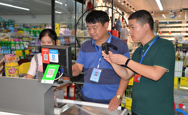 中秋前夕,安徽省涡阳县纪委监委组成多个检查组,深入大型超市、烟酒店等,重点检查违规公款消费等违反中央八项规定精神问题。(安徽省亳州市纪委监委 胡威 摄)