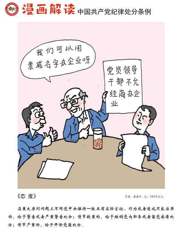编者按:纪律是我们党的生命线,加强纪律建设是全面从严治党的治本之策。为深入贯彻落实十九届中央纪委四次全会关于加强党纪国法教育的部署要求,强化党规党纪的学习宣传、贯彻执行,使铁的纪律真正转化为党员干部的日常习惯和自觉遵循,中央纪委国家监委网站联合河北省纪委监委,以漫画形式对《中国共产党纪律处分条例》进行解读,陆续连载刊发,敬请关注。
