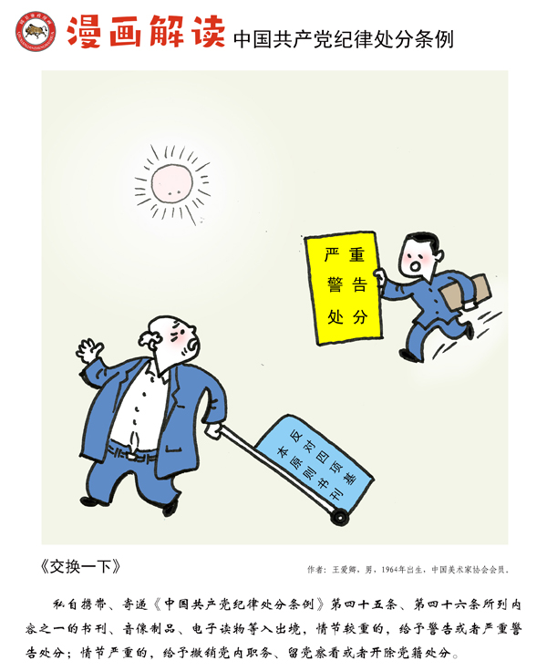 编者按:纪律是我们党的生命线,加强纪律建设是全面从严治党的治本之策。为深入贯彻落实十九届中央纪委四次全会关于加强党纪国法教育的部署要求,强化党规党纪的学习宣传、贯彻执行,使铁的纪律真正转化为党员干部的日常习惯和自觉遵循,中央纪委国家监委网站联合河北省纪委监委,以漫画形式对《中国共产党纪律处分条例》进行解读,陆续连载刊发,敬请关注。