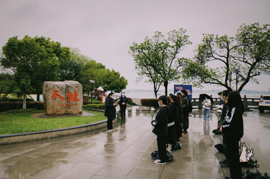 祭奠包括回顾“人链”故事、诗歌朗诵、默哀、献花等环节。活动伊始,同学们聆听了“人链”故事回顾及《人链精神,传承有我》的诗词朗诵,接着,全体同学伫立在庄严肃穆的“人链”纪念碑前手捧白菊集体默哀三分钟后,依次献上白菊,表达对逝去英雄的敬仰与哀思。