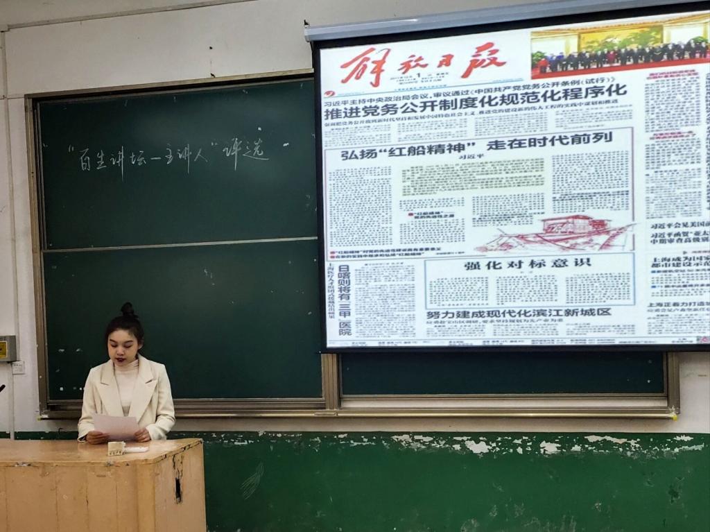 本网讯(通讯员 张金超)4月18日下午,第四期青马班“把党讲给你听”暨“百生讲坛——主讲人”评选比赛在城中2教103举行。本次活动旨在深入学习领会习近平新时代中国特色社会主义思想,深入贯彻落实习近平总书记在党史学习教育动员大会重要讲话和指示精神,同时为青马班选举活动代表参加学院团委决赛。本次活动由青马班班主任李晶晶老师和青马班各小组组长及班委担任评委。