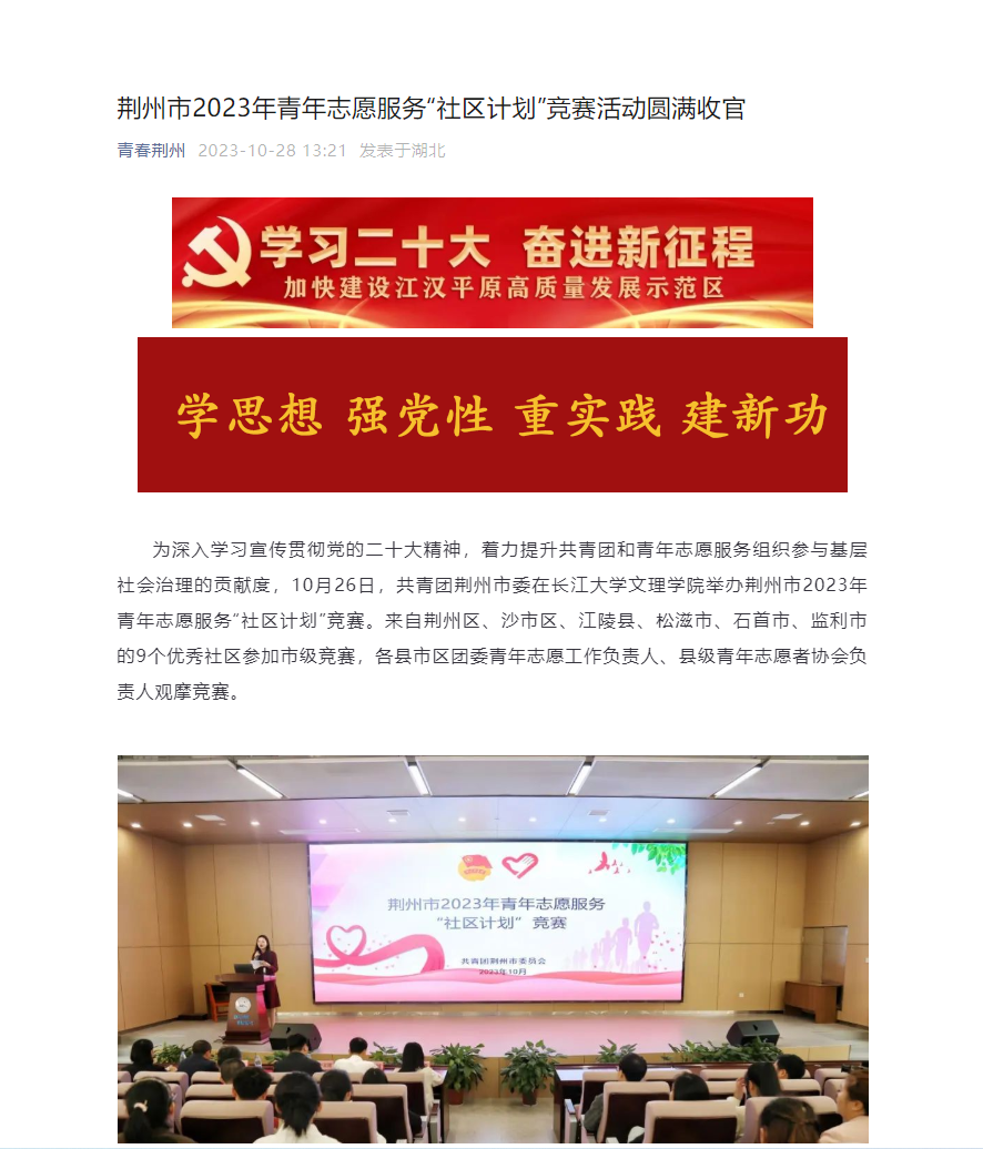 青春荆州:荆州市2023年青年志愿服务“社区计划”竞赛活动圆满收官