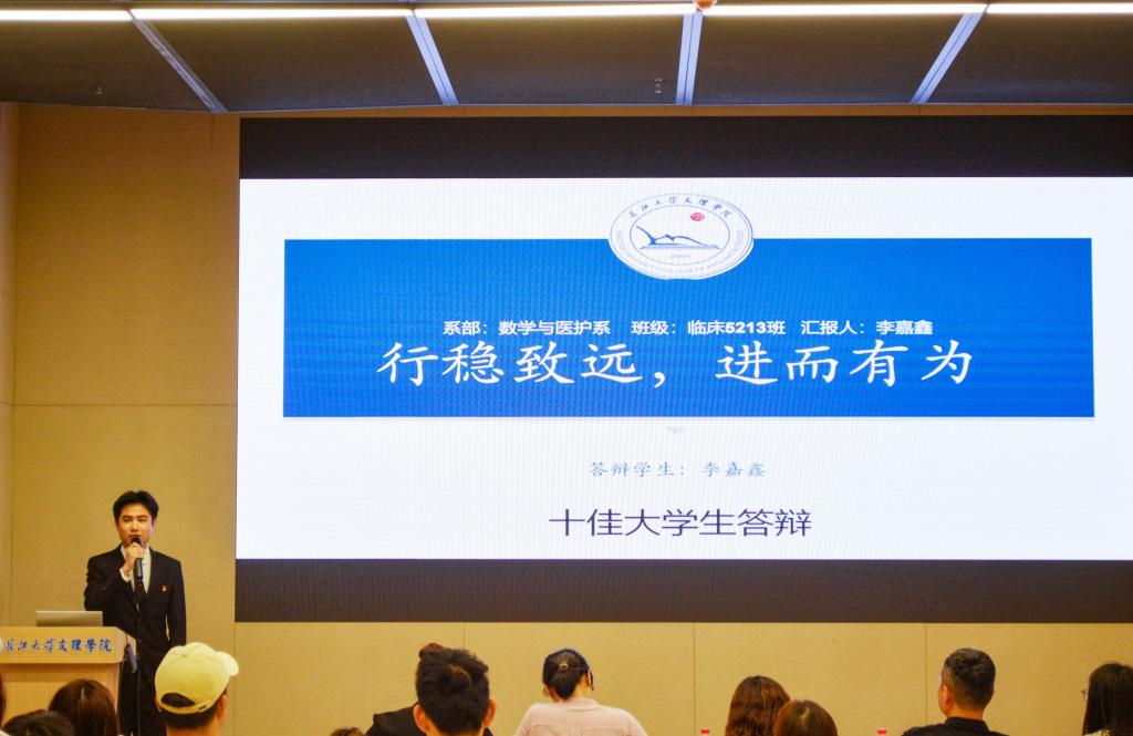 经个人申请、院系推荐、资格审查,来自9个院系的16名候选人参与到答辩环节,他们从思想引领、专业学习、科研创新、社会实践和志愿服务等方面进行个人陈述,然后以“责任与担当”为题,结合青年大学生的使命担当展开了简短的演讲。后期将综合个人积分、现场答辩、网络投票三个方面的情况,评选出10名第九届“十佳大学生”。