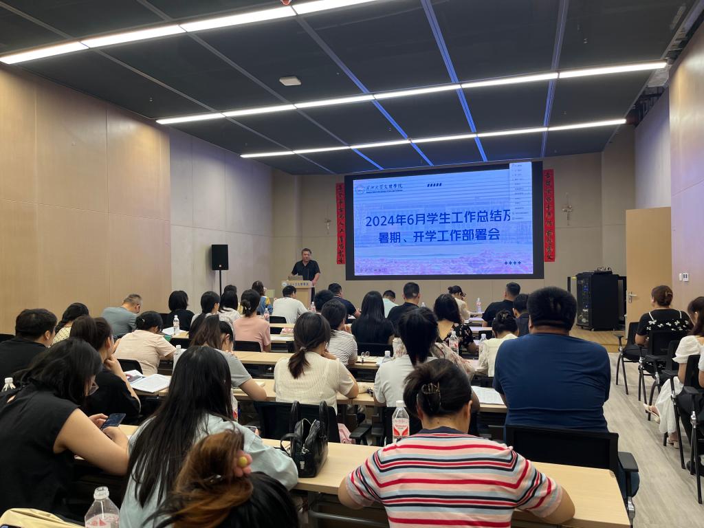 李则俊对上半年的学生工作进行了梳理总结,肯定了前期工作,并就暑期工作进行了提出了六点要求。第一,要认真总结上学期工作,查漏补缺,精准施策;第二,抓实抓细假期留校工作,做好教育管理服务工作,确保学生在校安全;第三,迎新准备工作前置化,细化方案、落实责任;第四,持续推进“一院一品”工作,强化内涵建设,切实提高育人成效;第五,做精做细就业核查工作,确保高质量、稳定、充分就业;第六,重视宣传工作,做好特色活动的宣传报道,产生社会影响,增强社会效应。
