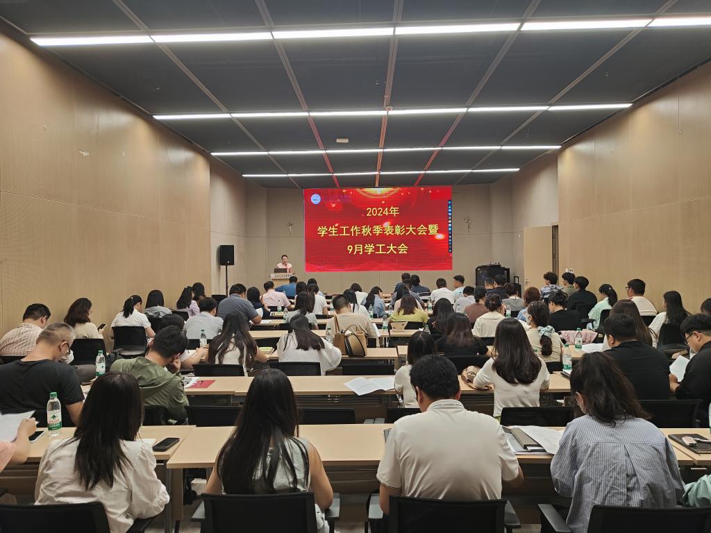 9月26日下午,williamhill官网在图书馆103报告厅召开学生工作秋季表彰大会暨9月学工大会。校领导学院党委副书记李则俊出席会议,党委保卫部负责人、各教学单位党总支书记、副书记、辅导员,党委学生工作部、学生就业指导处、团委全体成员参加会议。会议由党委学生工作部部长李刚英主持。