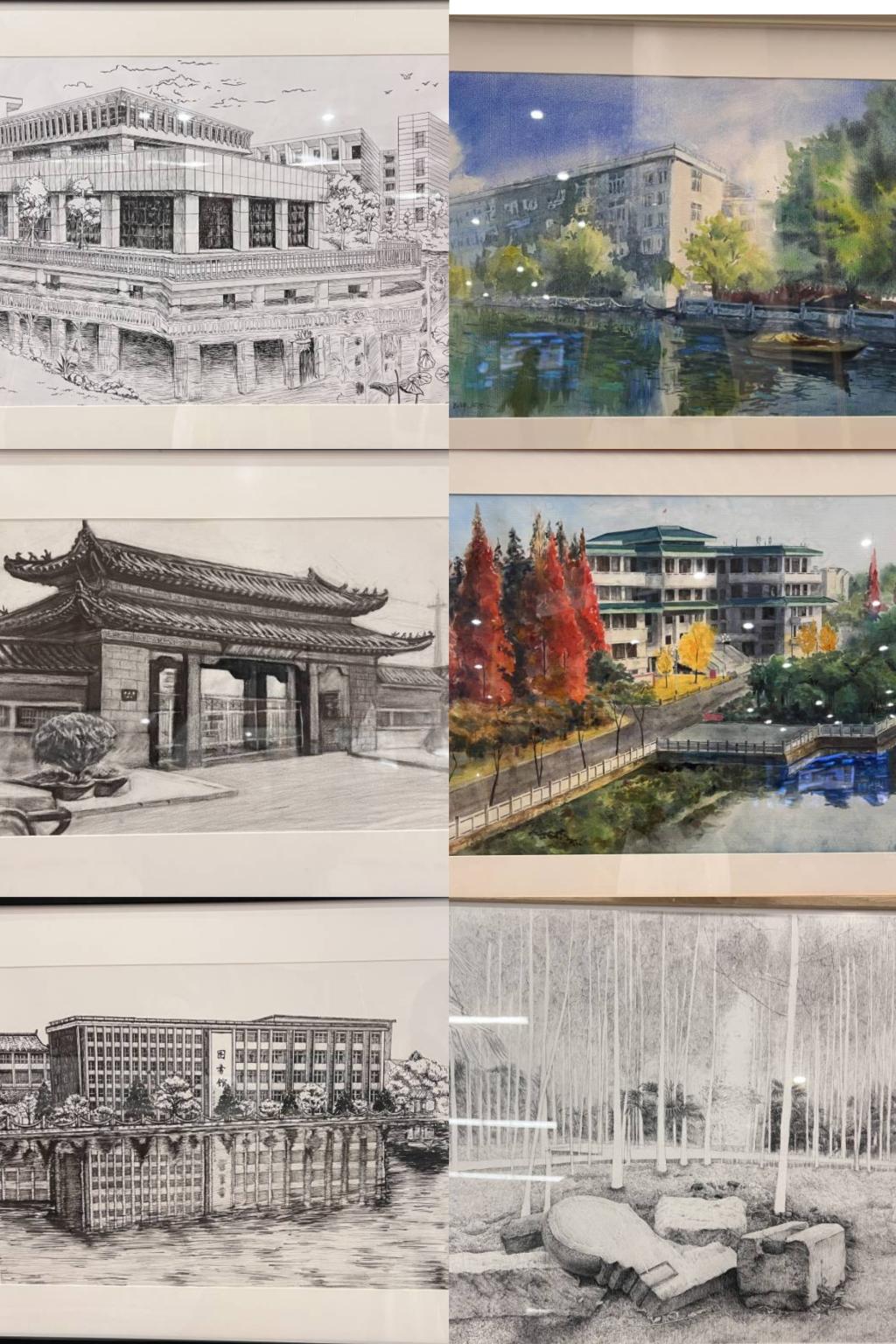 “这是老校区大门、图书馆和满墙的爬山虎、泮池水韵、朗诵亭的石磨石……”观展的校友们看到展出的画作惊呼。粉画《风采》、《疆域》等带领大家领略了williamhill官网办学20年来昂扬向上的精神风貌和锐意进取的家国情怀。一幅幅画作从独特的视角,以艺术的语言,展现校园旖旎风光,勾勒学院变迁,记录学院发展历程,传递着对美好未来的无限憧憬。每一幅作品,以笔墨为媒,以色彩为桥,以深情为伴,将学院的历史与现实紧密相连,表达着对学院各项事业的认知和理解,诠释着学院深厚的文化底蕴,彰显了学院的办学特色,倾诉了创作者对学院的情感,给观者呈现了一堂生动的思政课。