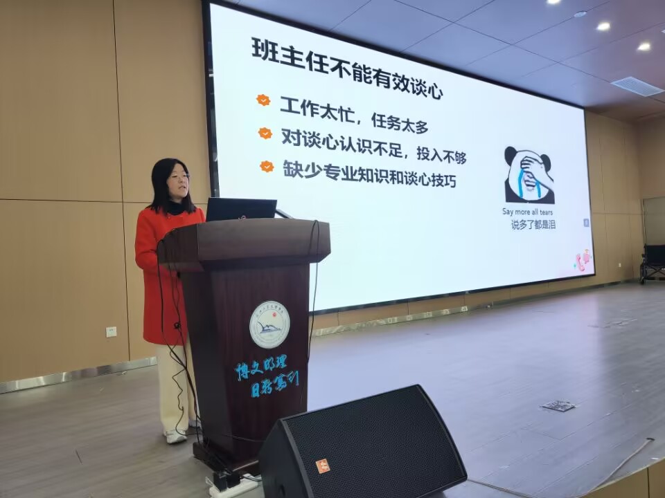 教育与心理学院徐文庆老师以《善做有心人 争做知心人》为主题,对班主任老师们进行了专业的谈心谈话技巧培训。她强调,谈心的目的在于深入了解学生,成为他们的知心朋友;方法上,要以“望、闻、问、切”,因人而异展开,共情理解学生,专注解决问题;谈心需持续进行,定期交流,积累让“有心”变“知心”。她鼓励教师们以爱心、耐心和细心投入工作,与学生共成长,体验幸福的教育之路。