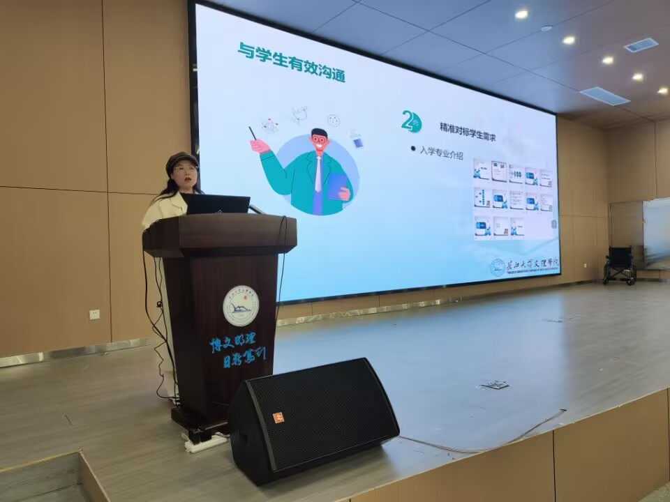 外国语学院优秀班主任代表李晴晴为老师们呈现了题为《多维度沟通协作 全方位引领陪伴》的精彩分享。她紧扣班主任核心职责,从班主任角色的重要性、与辅导员密切配合、与学生有效沟通和与任课老师深入交流四个维度展开阐述。李老师强调要与辅导员紧密合作的重要性,通过信息共享、协同合作,共同为学生成长护航。她详细分享了高效沟通的技巧,如何倾听学生心声,理解他们的需求;如何与任课老师沟通,提升班级整体教学效果。