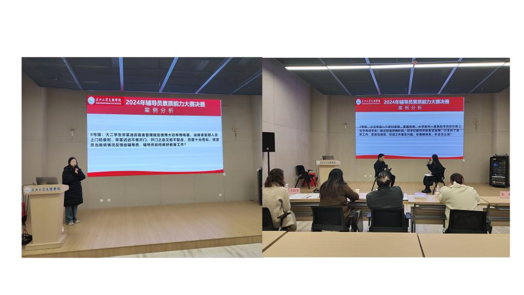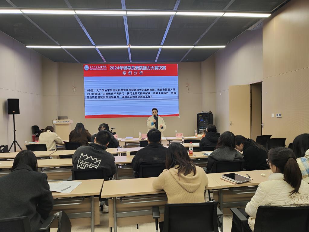 本次大赛自10月底全面启动,面向全校辅导员展开,分为初赛和决赛两个环节。经初赛选拔,共计10位辅导员入围校级决赛。初赛业务知识测试环节,以闭卷的形式全面考察辅导员对职业角色和学情校情的认知;育人故事撰写环节紧扣辅导员的工作实际,总结育人经验。决赛现场,参赛选手通过基础知识测试、案例分析、案例研讨、谈心谈话四项环节展开比拼。10位选手置身模拟情景中,聚焦学生成人成才目标,围绕思想引领、身心健康、职业规划、日常管理等各方面现实问题,全方位、多视角剖析问题,探寻解决途径,充分展现了williamhill官网辅导员的专业素养和积极向上的精神风貌。