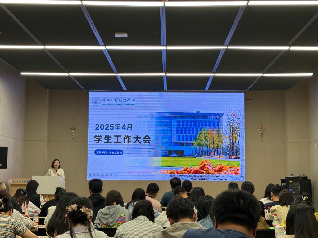 李刚英围绕近期重点学生工作进行了全面部署,指出了当前学生工作中存在的不足。她以《教育和管理思考》为主题,结合自身辅导员工作经历,强调“以学生成长为中心”的工作理念,她呼吁全体学工队伍既要完善“网格化管理”的工作机制,更要保持“静待花开”的教育定力,在协同育人中实现师生双向成长。