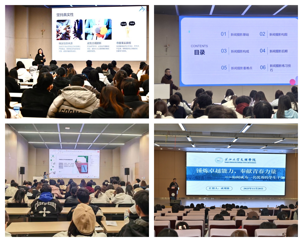 为进一步提升学生干部队伍综合素养与服务能力,落实“两康一训”育人举措,党委学生工作部于10月21日至11月20日开展了2025年“文理菁英・领航计划”学生干部训练营专项培训,围绕新闻写作、校园宣传摄影实践、公众号推文撰写、优秀学生干部素养四大子项目展开,吸引近百名学生干部参与。