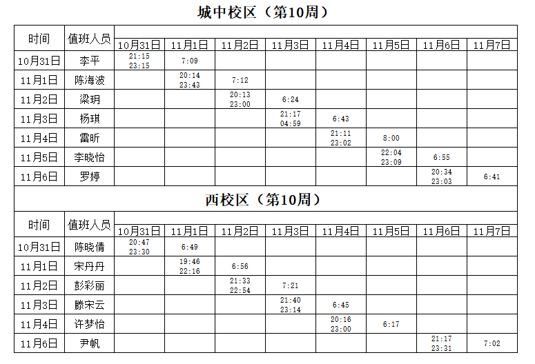 2022-2023学年第1学期第10周学工人员寝室值班通报