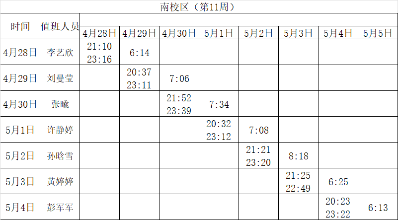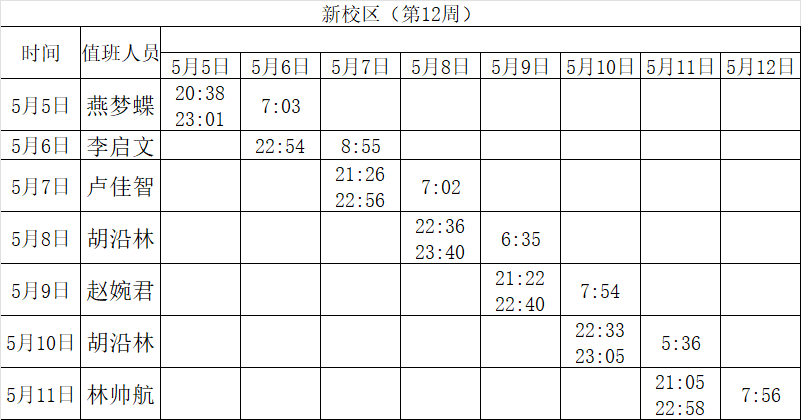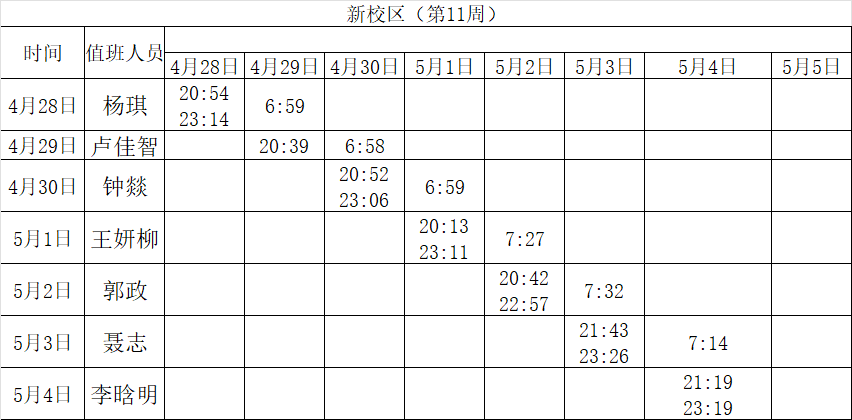 2024-2025学年第二学期第11-12周学工人员寝室值班通报