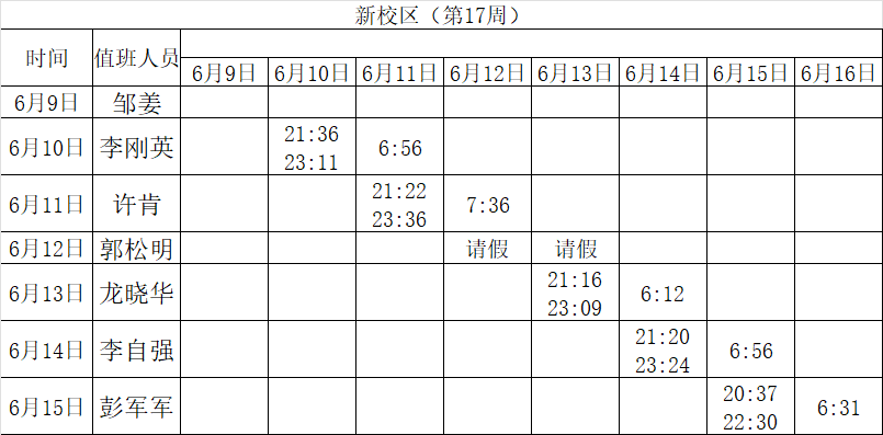 2024-2025学年第二学期第17-18周学工人员寝室值班通报
