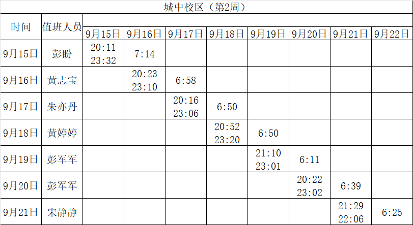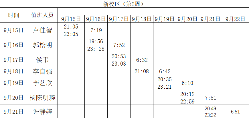 2025-2026学年第一学期第1-2周学工人员寝室值班通报