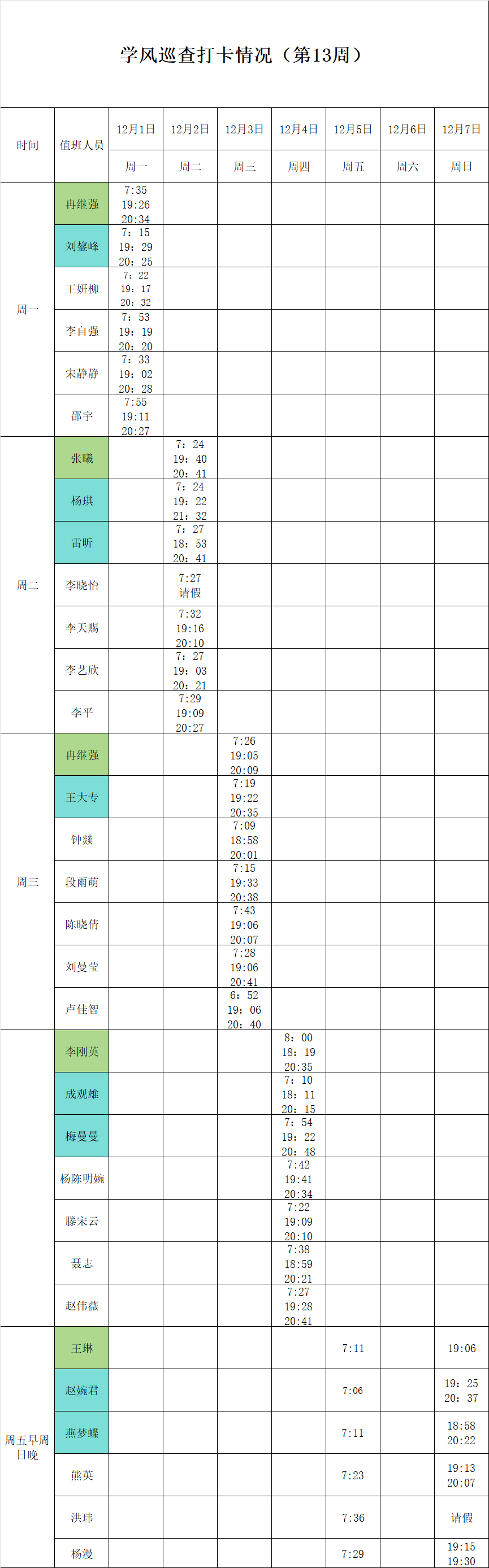 2025-2026学年第一学期第13-14周学风巡查打卡情况公示