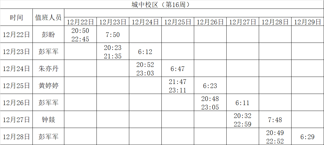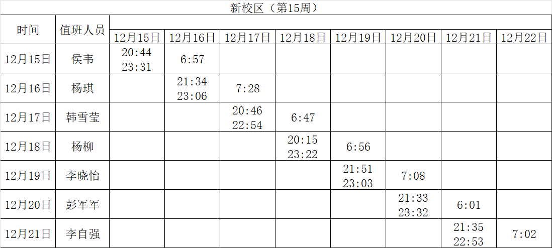 2025-2026学年第一学期第15-16周学工人员寝室值班通报