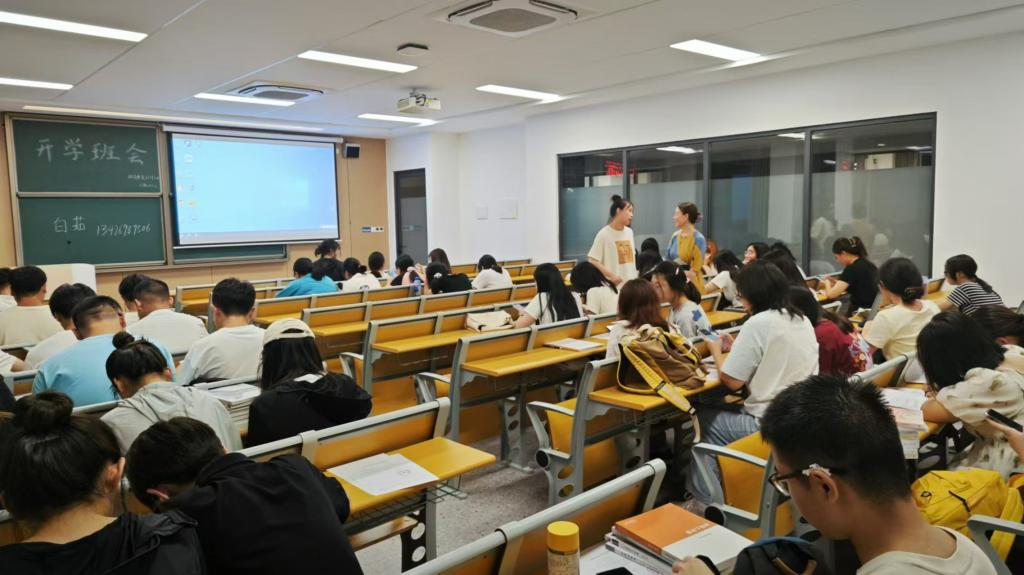 本网讯(通讯员 成观雄)为引导同学们迅速回归大学校园生活,明确学习目标,增强安全意识,9月1日晚上7点,全院班主任、辅导员于开学之际面向各班学生召开“开学第一课——收心班会”主题班会,同时学生工作部工作人员到现场检查工作。此次班会各班班主任、辅导员主要围绕校园安全教育、新学期学业规划、心理调适等方面展开。