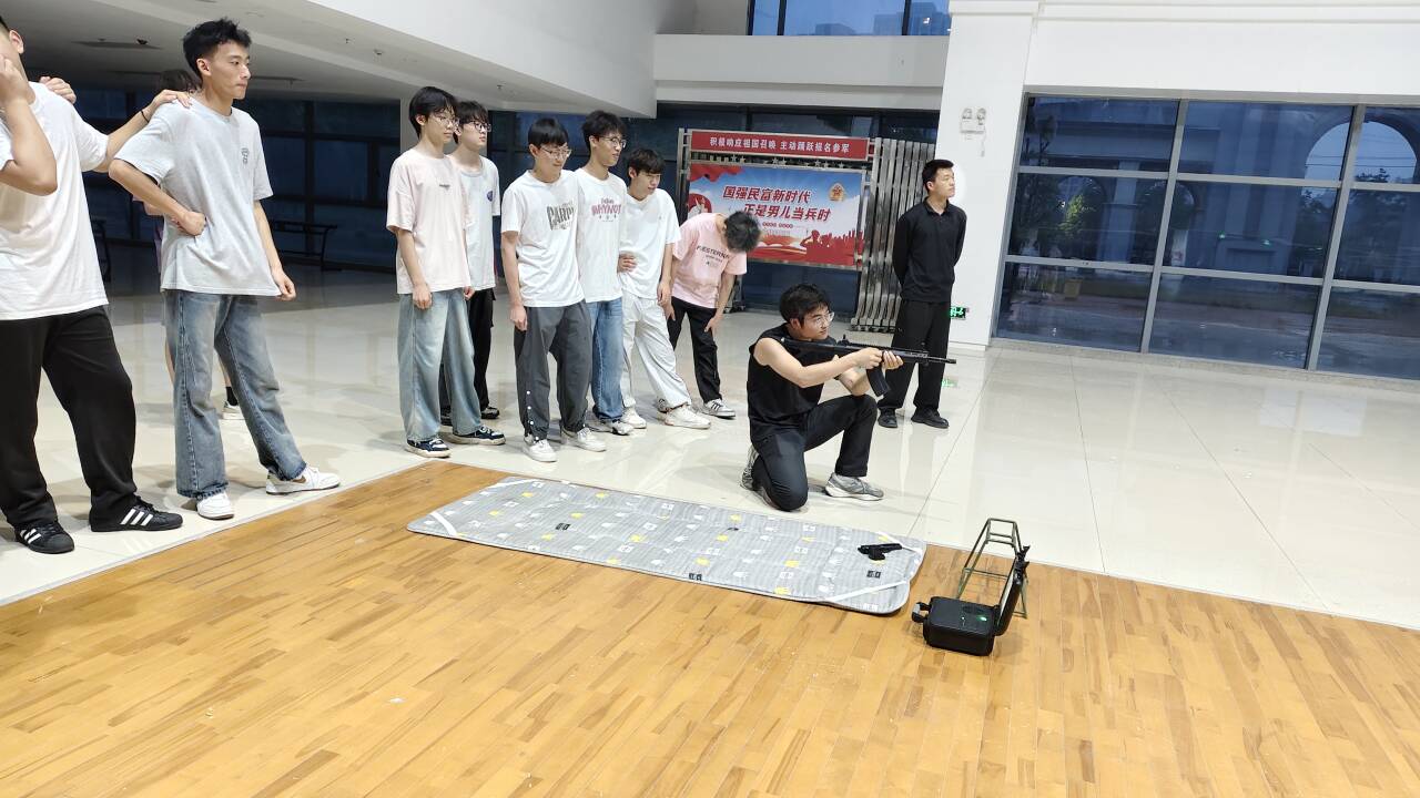 晚7时,全体队员于校训石前准时集合,队长强调纪律与安全事项后,队伍整齐列队步行至荆职训练场。抵达荆州职业技术学院后,首先荆州职业技术学院国旗护卫队队员为我们展示了电子气枪的标准操作流程,从持枪姿势、瞄准技巧到安全规范,每一步骤都细致讲解。队员们全神贯注。在分组教学中,荆州职业技术学院国旗护卫队的学长学姐们一对一纠正动作细节,耐心解答疑问。“肩部放松,三点一线”“扣动扳机要稳”,队员们认真聆听,反复调整,将理论转化为实践。