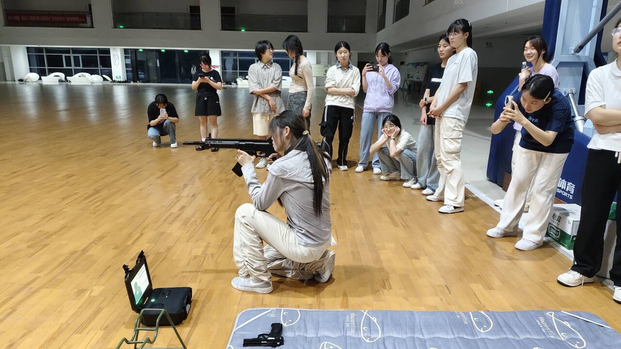 实操环节,队员们有序排队,轮流上阵体验电子气枪射击。清脆的电子音与专注的呼吸声交织,每一次尝试都是对自我突破的挑战。