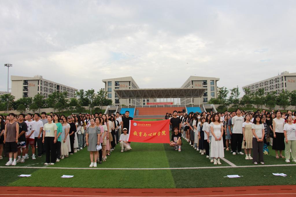 本网讯(图文 薛兰慧)2024年6月24日上午,为增强同学们自觉远离毒品、自觉抵制毒品的意识,提高识毒、防毒和拒毒的能力。教育与心理学院在学校田径场举行了“珍爱生命,远离毒品”主题升旗仪式,我院全体师生参加,仪式由学前5212班赵子怡主持。