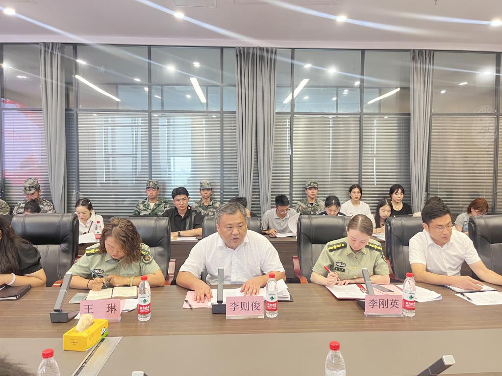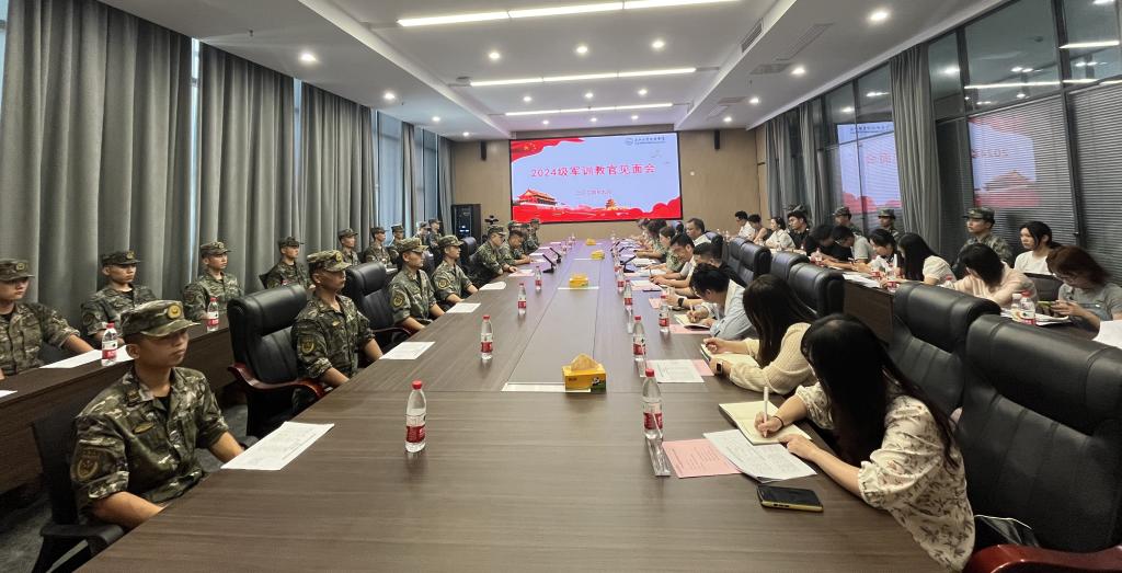 9月8日下午,在图书馆512会议室举行2024级本、专科新生军训教官见面会。学校领导学院党委副书记李则俊,党委学生工作部部长李刚英、副部长王琳,武警荆州支队作训参谋王浩、队管参谋刘畅,全体带训教官、新生辅导员、学生工作部相关工作人员参加会议。