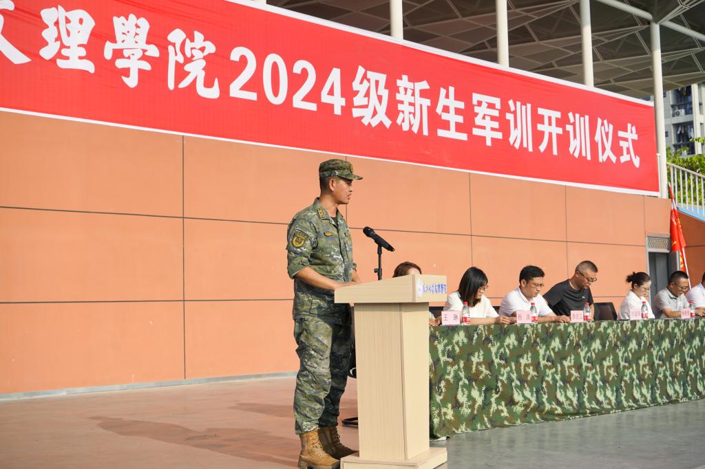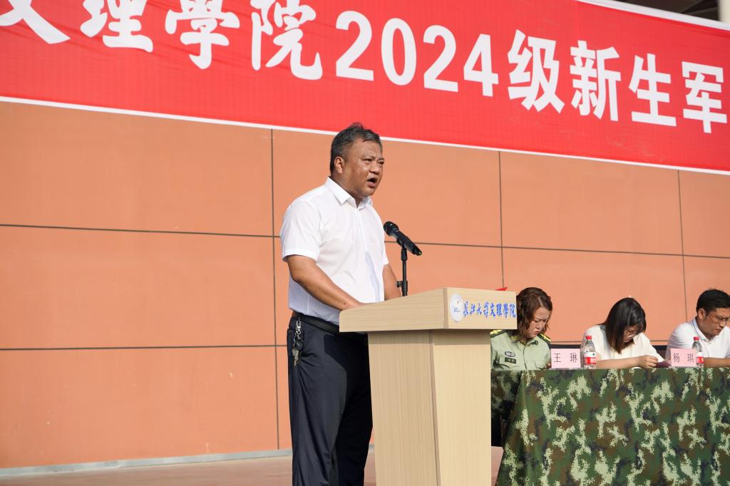李则俊代表学校对武警荆州支队的教官们表示热烈欢迎和诚挚感谢,对全体参训新生表示亲切问候。他指出,军训是国防教育的重要组成部分,是大学生活中的第一堂必修实践课,是同学们即将踏上人生新征程的冲锋号,希望军训能成为学生们成长的助推器。同时,他对参训新生提出四点希望和要求:一是“立正”身心,铸就钢铁般的体魄;二是“看齐”英雄,练就一身过硬的本领;三是“敬礼”军人,共同铸就强大的国防;四是“集合”力量,携手成就伟大梦想。他希望同学们在军训过程中严格训练,让身心充盈朝气,行动满怀豪气,在担当中淬炼青春,作新时代有为青年。