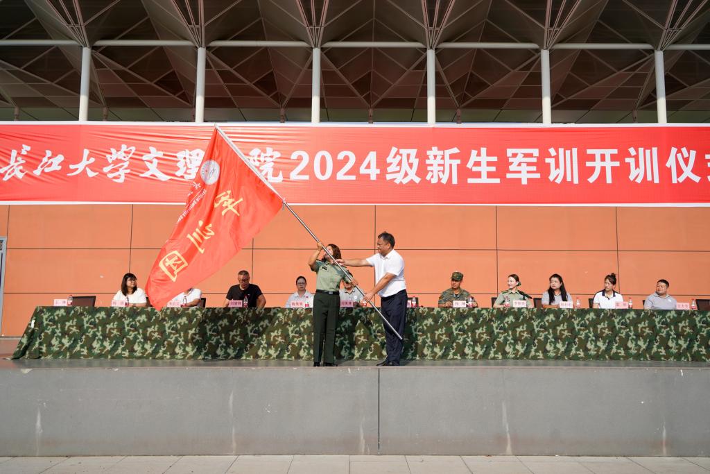最后党委副书记李则俊给军训团授旗,并宣布williamhill官网2024级新生军训正式开始。