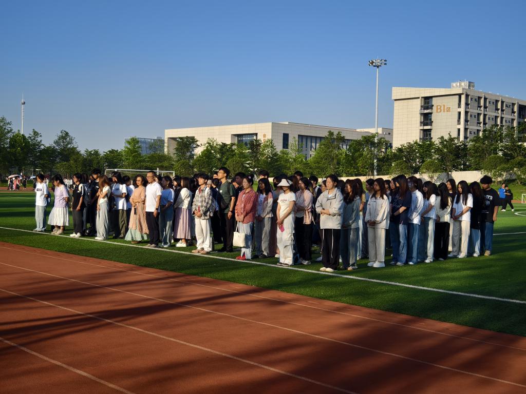 5月12日清晨,马克思主义学院在田径场举行了以“筑牢安全防线,勇担青春使命”为主题的升旗仪式,马克思主义学院全体师生参与,仪式由思政 5241 班向祺娴同学主持。