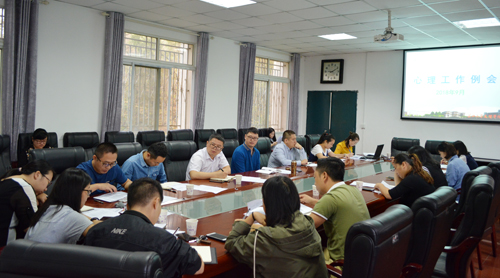 心理健康教育中心主任李刚英汇报了心理健康教育中心迎接省厅达标评估相关准备工作,并对寝室周记APP运行工作进行了说明。