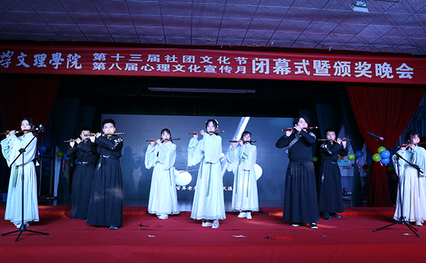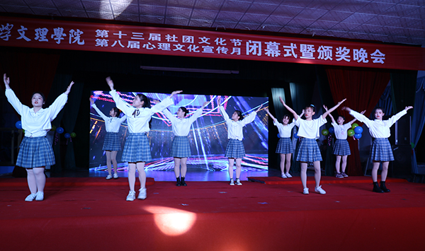 晚会分缤纷社团秉初心、青春交响谱华章、经典传承再启航三个篇章,共上演了舞蹈、声乐、朗诵、小品、乐器等不同类型的十个节目。现场气氛热烈,掌声、欢呼声、呐喊声不断,观众挥舞荧光棒为精彩的表演喝彩。秋水汉服社、跆拳道协会、舞蹈协会、笛萧协会、相声协会、手语协会、校园广播台、老兵团国旗护卫队等学生社团及学生组织的同学,分别表演了《汉服秀》《跆风》《青春组歌》《撑腰》《商鞅》《中国梦》《强军梦》等主题鲜明、时代气息浓厚的艺术节目。