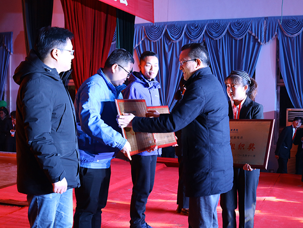 王文凯(右二)为心理文化宣传月优秀组织单位颁奖