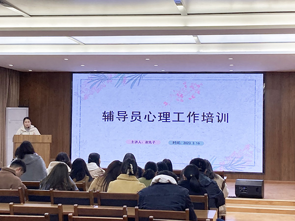 本网讯(通讯员 彭彩丽)近日,学院3月份心理健康教育月活动启动,目前已开展了4场培训。心理健康教育中心专职教师谢先子面向辅导员开展了关于心理测评、心理危机、心理访谈等日常基本工作要求的培训,“辅导猫”负责人刘甜甜面向辅导员开展了关于“辅导猫”APP的使用说明的培训,指导辅导员利用该APP开展学生安全工作;荆州市妇幼保健院医生以“豆蔻年华 青春起航”为题,面向大一女生开展了女生讲座,从女性青春期的生理特点、心理特点等方面展开阐述。本次活动主题为“心沐暖阳 自放光芒”,将连续开展4周,面向心理四级网络工作人员展开一系列培训。