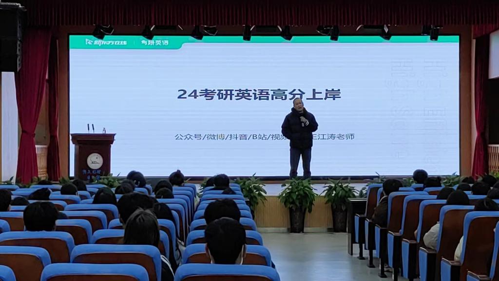 为进一步加强学风建设,助力学生就业升学,帮助学生掌握正确的考研方法和技巧,2月19日晚,学院团委特邀请新东方考研英语首席讲师王江涛先生来williamhill官网为大三学子举办了考研英语专题讲座。