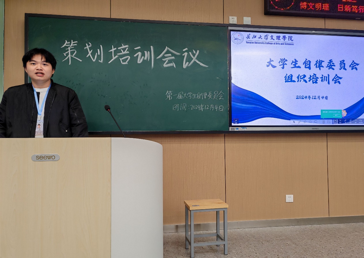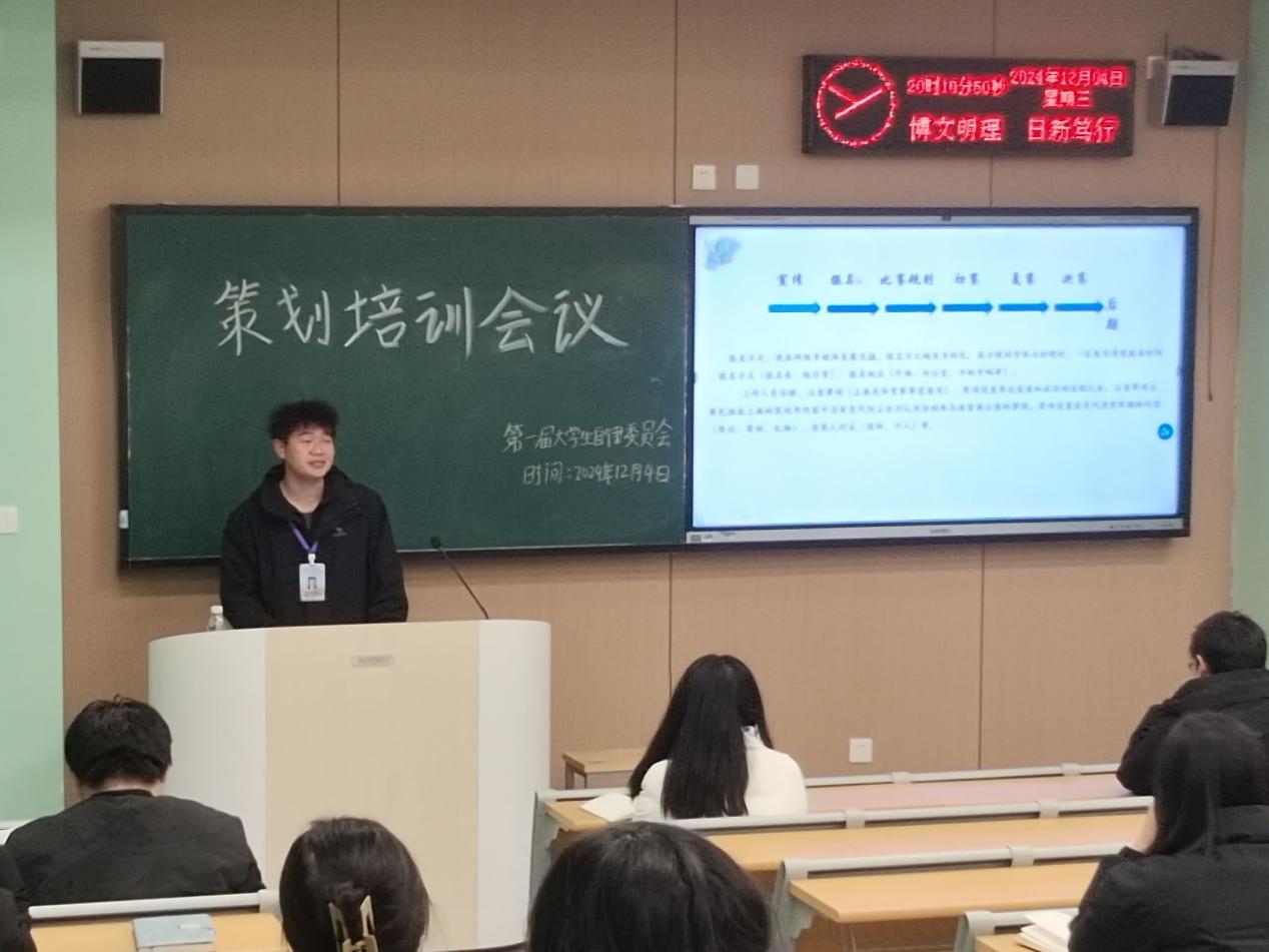 本网讯(通讯员:袁心雨)12月4日晚20:00,大学生自律委员会在教学楼A-108S召开了策划案培训会。本次会议由综合办公室张平同学担任主持人,信息与机电工程学院学生会主席王盛博学长担任主讲人,会议重点聚焦策划案撰写方法,同时对近期工作注意事项作了补充说明。