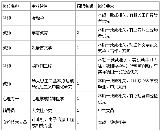 因学院工作需要,现面向社会公开招聘专任教师、辅导员及实验技术人员若干名,有关事项公告如下:
