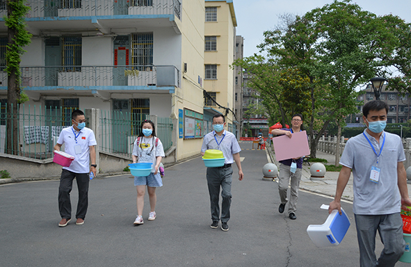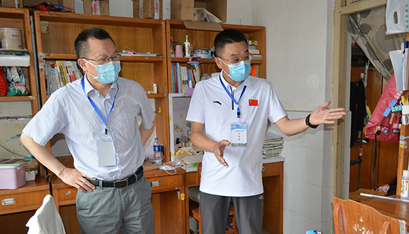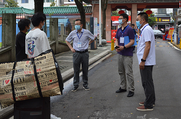 王文凯(后排左三)、朱继平(后排左一)、孙细望(后排右一)帮学生搬行李 询问学生毕业手续办理情况 深入学生宿舍检查 本网讯今天(6月15日)上午,院长王文凯、党委书记朱继平、党委副书记孙细望来到毕业生返校工作现场,查看了毕业生返校报到处体温检测、资格核验等设施,询问毕生手续办理流程和学生、家长及工作人员用餐准备情况,深入学生宿舍看望毕业生,并对返校学生管理、防疫安全、服务保障等方面提出了指导性建议。(记者 吴秀丽摄影报道)