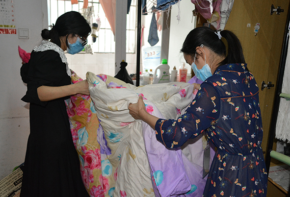 在7舍128寝室,管理系老师王立如同妈妈一般为学生整理床铺、收拾行李,亲切叮嘱需要注意的事项……同样温暖的一一幕发生在校园里的每个角落。