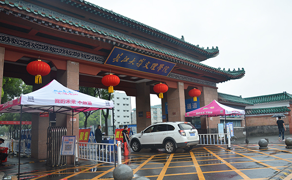 在学院西大门的安全测温通道,通过酒精消毒-口罩替换-体温检测-核验身份等层层安全“关卡”后,甘思佳终于迈进久违的校园。