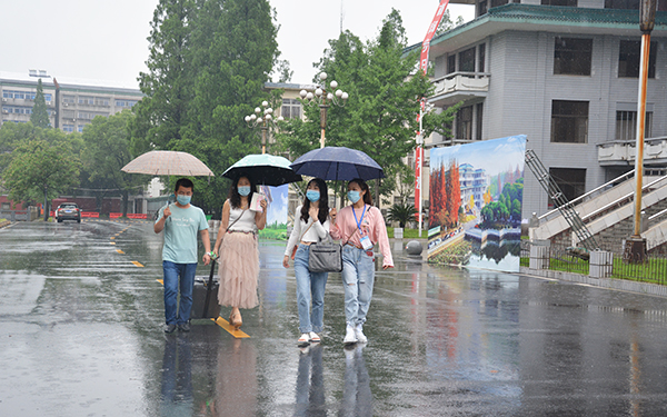 到达学校,已接近中午12点,风雨交加。但甘思佳和妈妈并没感到孤单,系里的党总支书记、“一对一”服务的老师,为她们撑着伞、拖着行李箱,引导她们直接到指定的固定场所快捷办理毕业手续。