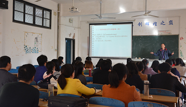 本网讯(通讯员 杨杨)11月14日下午,在城中校区1教207教室,长江大学外国语学院国培计划培训团队核心成员吴亚华副教授以“后方法时代的教师专业发展”为题讲学,外语系主任许晓艳和该系全体专任教师现场聆听。
