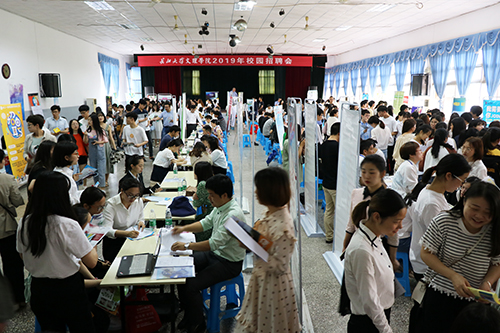 本网讯(记者 刘磊 通讯员 祝峰)5月26日,我院2019年校园招聘会在城中校区工会三楼举办。本次招聘会吸引近60家用人单位前来参与,单位性质包含民营企业、合资企业、股份制企业等,为我院2019届、2020届各专业学生提供近1700个就业岗位。