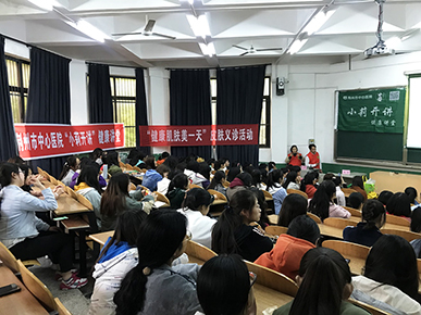 本网讯 4月9日,外语系在城中校区1-203教室举办皮肤健康知识讲座。荆州市中心医院皮肤科副主任孙毅博士、医师张丽分别围绕“面部皮肤护理”与“春季预防过敏”两大主题,介绍了皮肤护理基本知识,指出了季节性皮肤疾病的防治方法,针对痤疮和春季皮肤过敏提出有效鉴别方法和治疗建议。互动环节,该院皮肤科主任曾同祥、副主任柳兵、护师邬清芝就学生关心的问题予以一一解答。当天,来自各系的百余名学生现场聆听。 学生记者 黄茜 通讯员 辛叶 摄影报道 (责任编辑 刘磊)