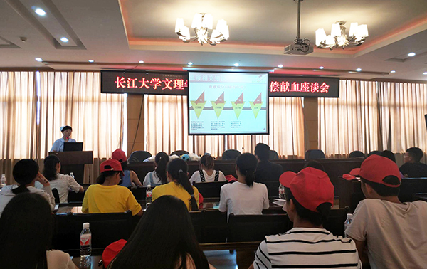 本网讯(通讯员 王星星)6月30日下午,我院“爱出发”志愿服务队的50名志愿者到荆州市中心血站参观学习。在中心血站多功能会议厅,我院志愿者无偿献血座谈会召开。团委乔炎老师、荆州市中心血站副站长黄华和相关工作人员参加会议。